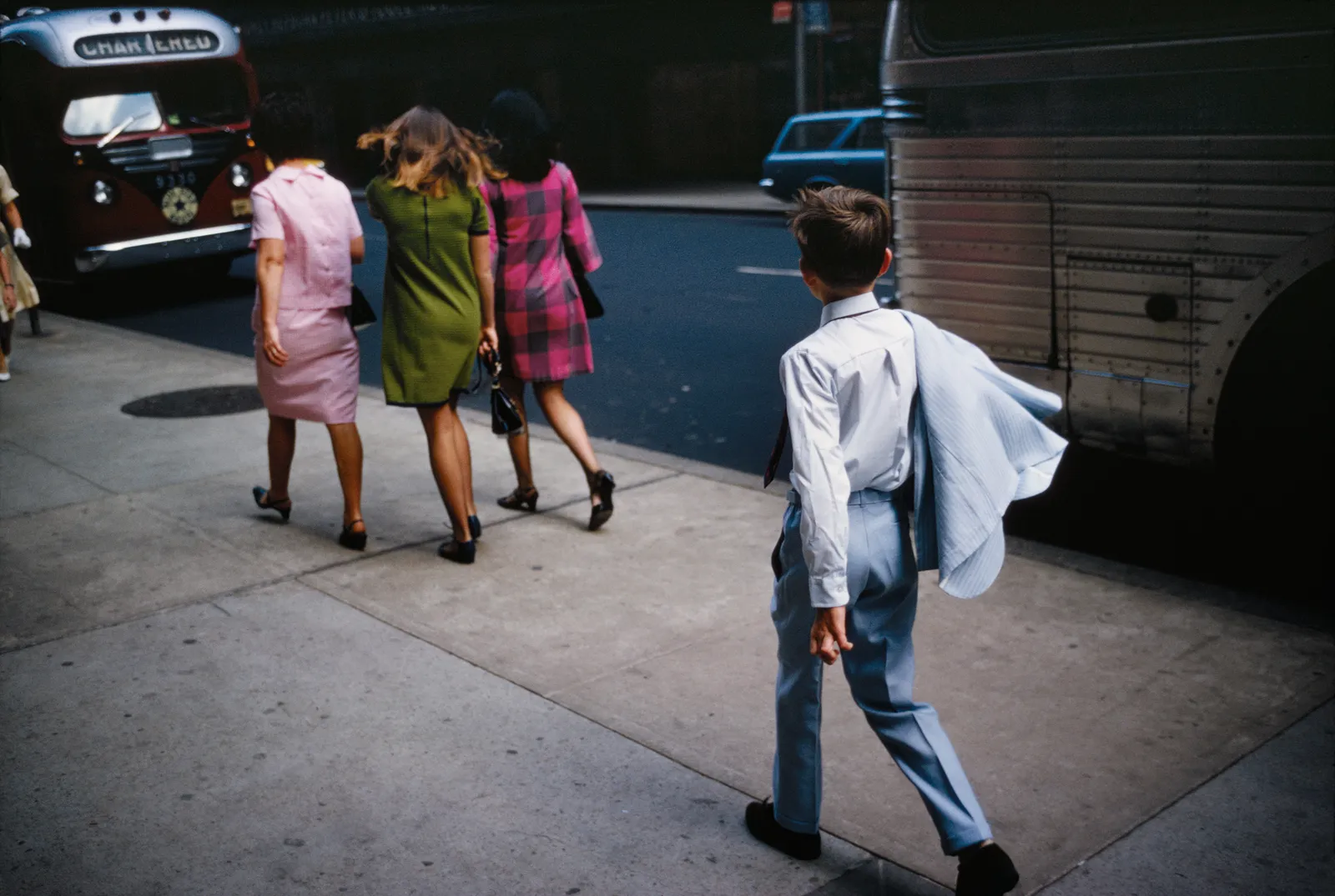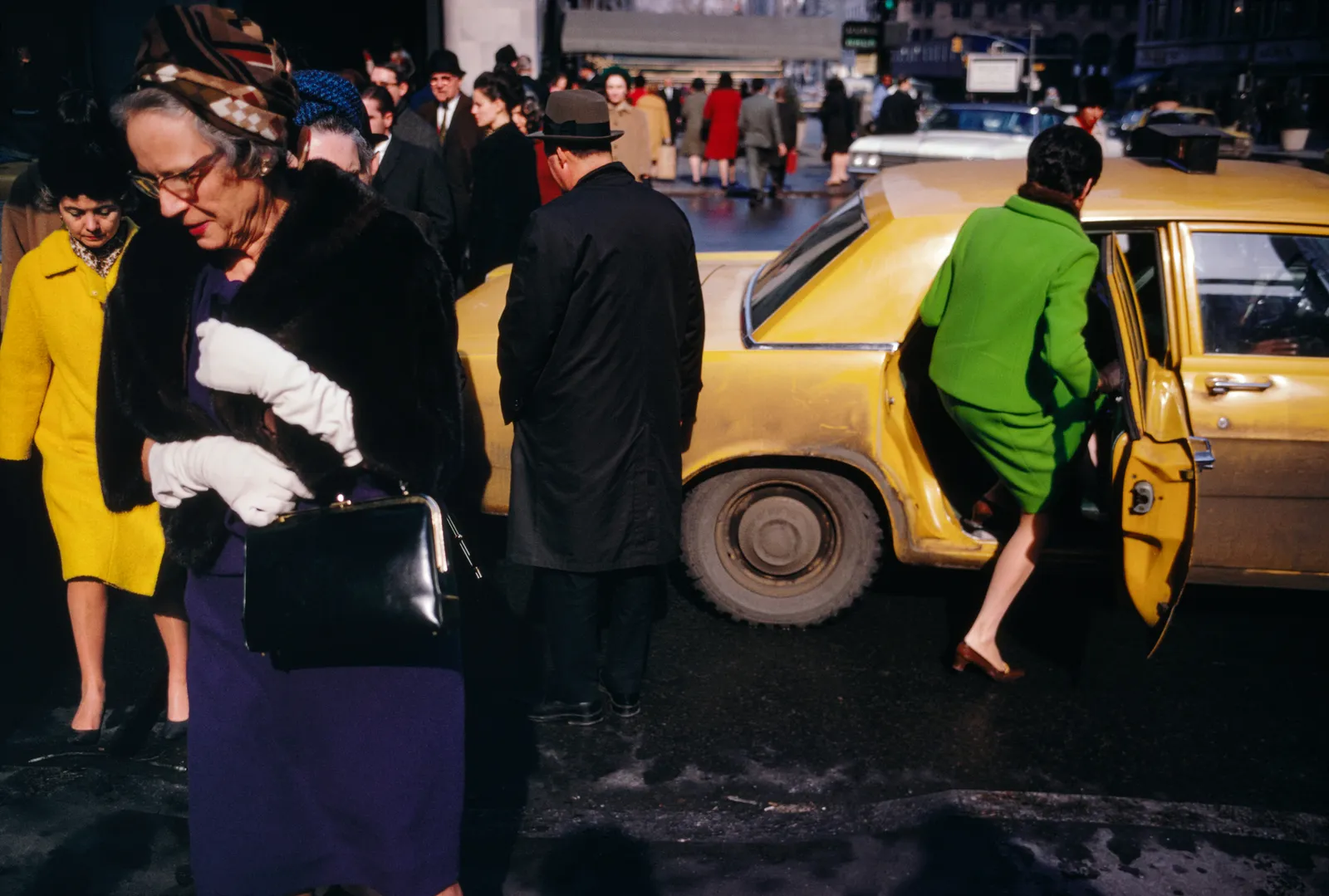 The color material is more immediately inviting than his black-and-white work, but no less layered or sly. Mostly, the images are matter-of-fact; whereas color is often an event for William Eggleston, for Winogrand it’s taken for granted both as a useful tool and a fine finish. The new book is organized somewhat chronologically (from 1951 to 1967) and on what Almereyda, the co-editor, calls a “cross-country trajectory,” starting in Coney Island and ending in Los Angeles, with many switchbacks in between. Coney Island, through Winogrand’s eyes, is an idyll—sensual, rapturous, and beautifully composed. Everything that follows has an edge—rarely cutting, but rougher. Many of his best pictures are of women seen in passing. Even when he’s not clearly smitten with them—when they’re just the focus of momentary delight—the images pop. Often they’re my favorite sort of fashion photographs: great pictures of women in clothes—striding, gesturing, not always unself-conscious but off-guard.